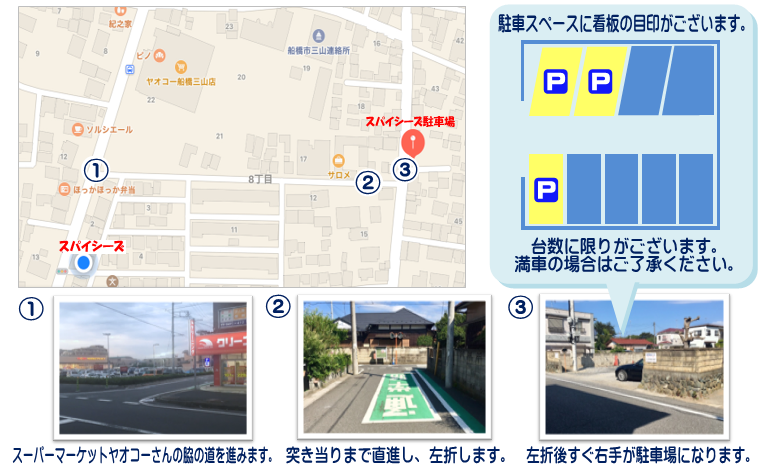 当店お客様専用駐車場のご案内 平成30年9月1日より駐車場の場所が下記の場所に変更となりました。 ご注意くださいませ。。